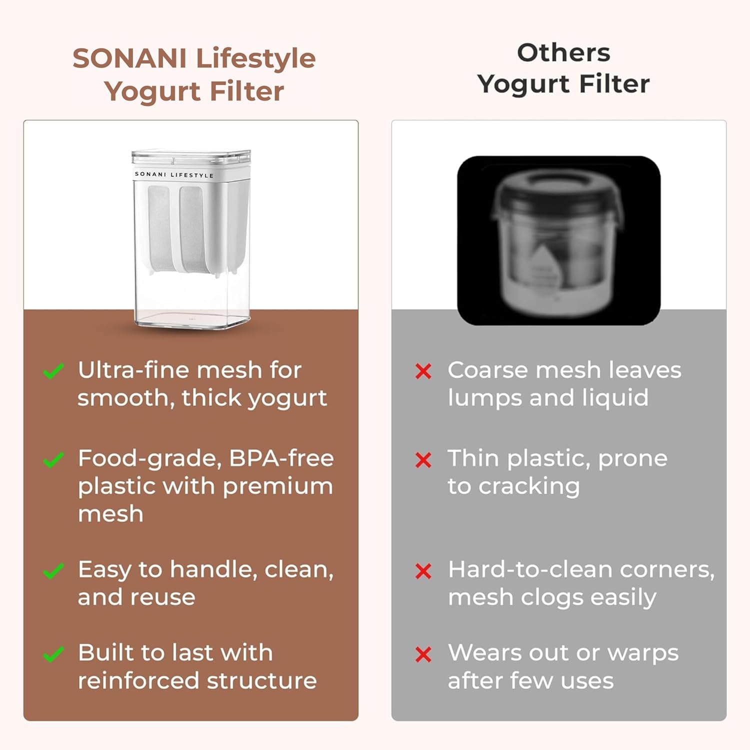 - ๐งฝ ๐๐ฎ๐๐๐น๐ฒ-๐๐ฟ๐ฒ๐ฒ & ๐๐ฎ๐๐-๐๐ผ-๐๐น๐ฒ๐ฎ๐ป ๐ฌ๐ผ๐ด๐๐ฟ๐ ๐ฆ๐๐ฟ๐ฎ๐ถ๐ป๐ฒ๐ฟ โ Designed for convenience, the Yogurt Filter allows simple pouring, covering, refrigerating, and strainingโno cloth needed. BPA-free plastic and removable stainless steel mesh make cleaning quick and hygienic.