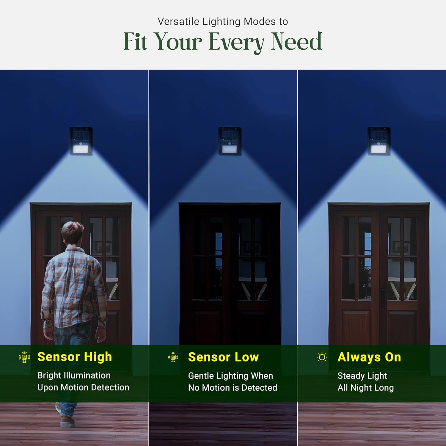 - Smart Motion Sensor with 3 Modes - Built-in motion sensor activates light when movement is detected. Choose from 3 modes: off during the day, motion-activated at night, or motion-activated with dim afterglow.