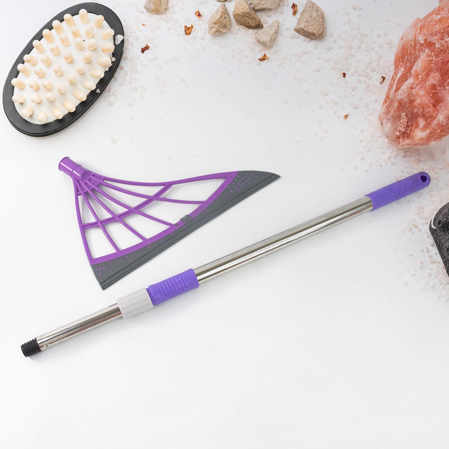 - The upgraded magic broom sweeper is a multi-functional cleaning tool that is a handy broom for cleaning tiles, rugs, floors, living rooms, kitchens, hard floors, swimming pools, garages, and bathrooms. The rubber broom can also be used as a window squeegee for cleaning and spraying glass surfaces.