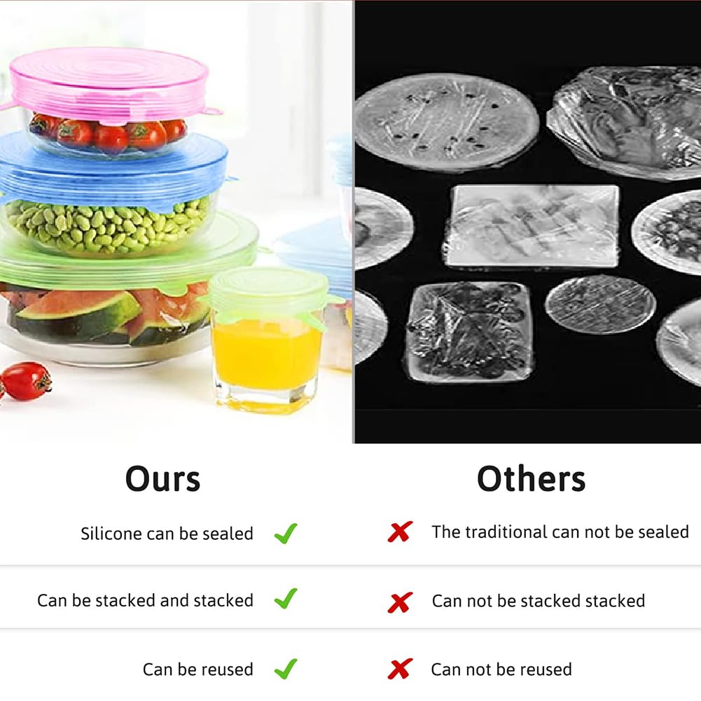 - ECO-FRIENDLY AND ECONOMICAL - The silicone stretch cover lids will reduce your plastic waste and help you save money, since you will no longer need to buy cellophane to cover your leftover food fresh. Plus, the bowl lid does a much better job at keeping your food fresh!