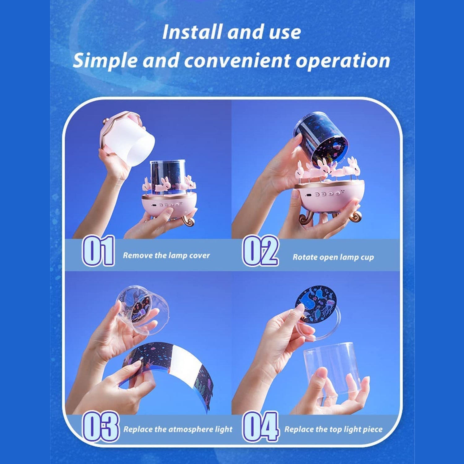 - The star projector night light projector can be used for 4-10 hr. The star projector for kids needn't change the 3A battery. Also, you can take this baby night light & star lights for ceiling anywhere CORDLESS.