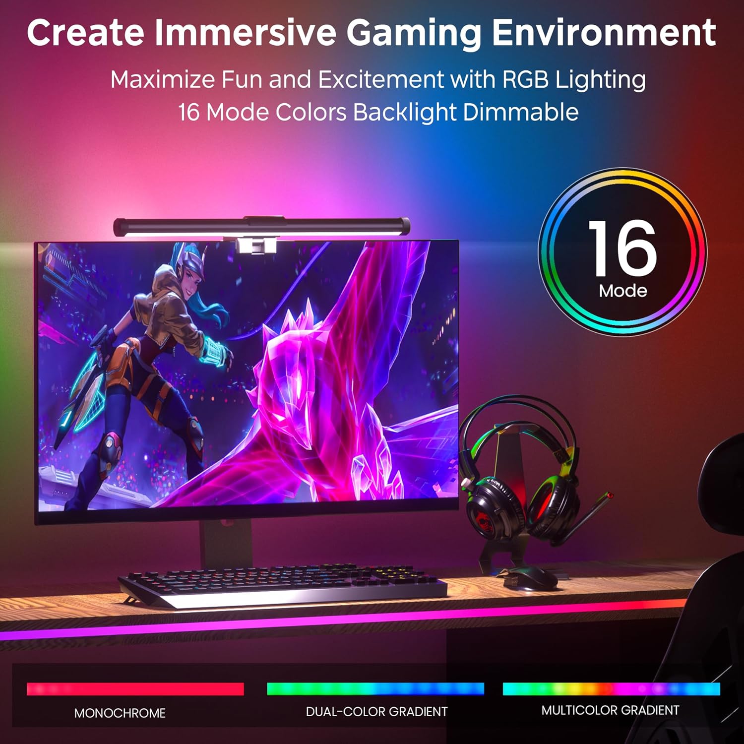 - No Screen Glare & Flicker - Easy on Your Eyes: With 45° angled asymmetrical optical design, our desk lamp only illuminates your desk and keyboard, enhancing immersion and focus while correctly eliminating reflective glare on the screen on both sides of the monitor lamp bar. Effectively relieving eye fatigue to protect your eyes ensure comfortable viewing while you work or relax.