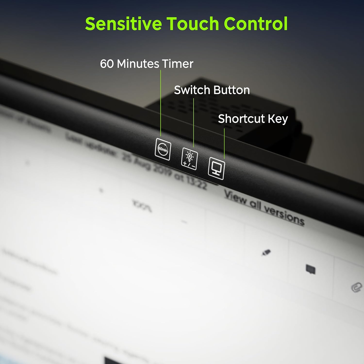 - Adjustable Stepless Dimming & 3 Color Temperatures: Switch between three color temperatures—warm white (3000K), natural white (4100K), and cool white (6300K)—with a simple touch. Long-press for stepless adjustable brightness, allowing you to fine-tune your LED desk lamp from gentle ambient light to bright, focused task lighting. This screen light bar adapts to every scenario: reading, working, gaming, or online meetings. High Color Rendering Index (CRI >90) ensures true-to-life colors, reducing eye strain for long study or office sessions.