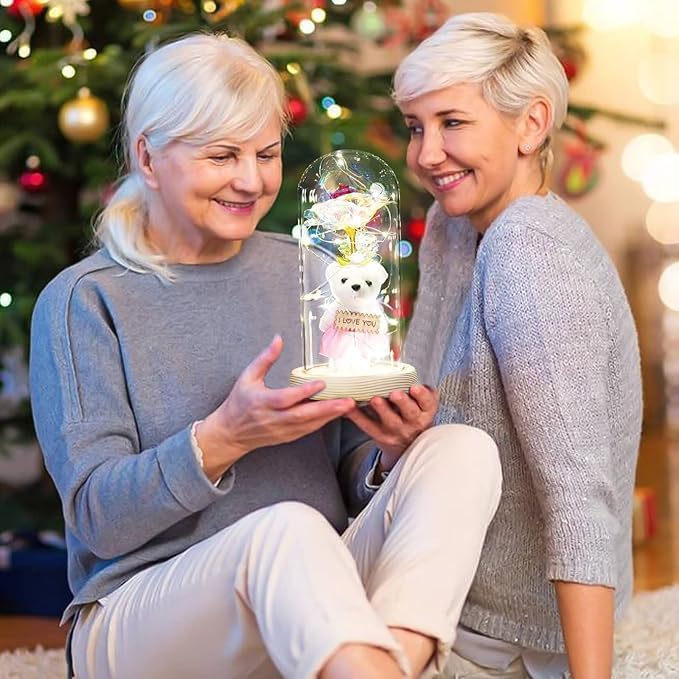 Rose with Teddy Bear & LED Light in Borosilicate Glass Dome β Romantic Gift for Wife, Girlfriend, Mom | Birthday, Anniversary, Motherβs Day | Mood Lighting Decoration