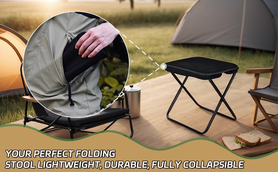 Folding Stool, Mini Outdoor Camping Stool, Portable Small Foldable Lightweight Hunting Seat with Zippered Carrying Bag