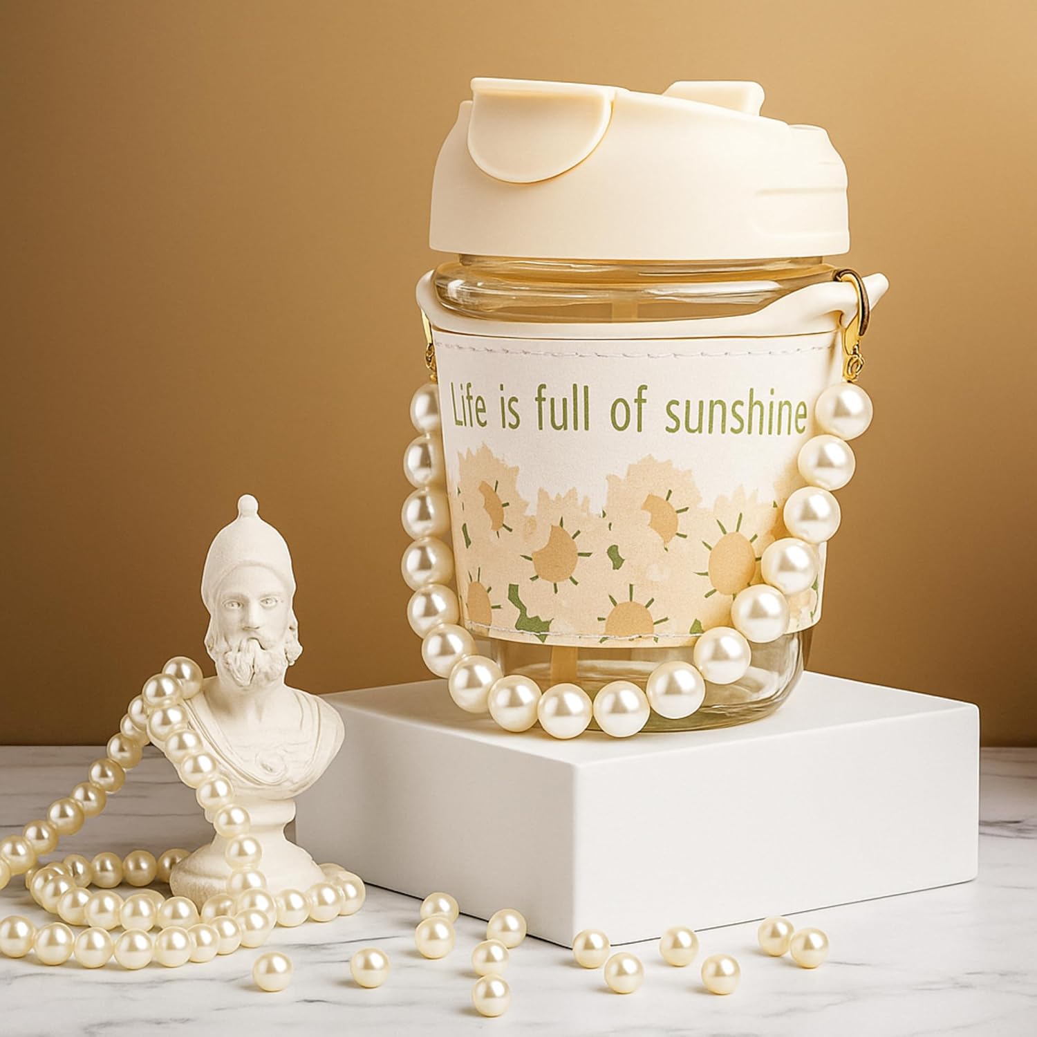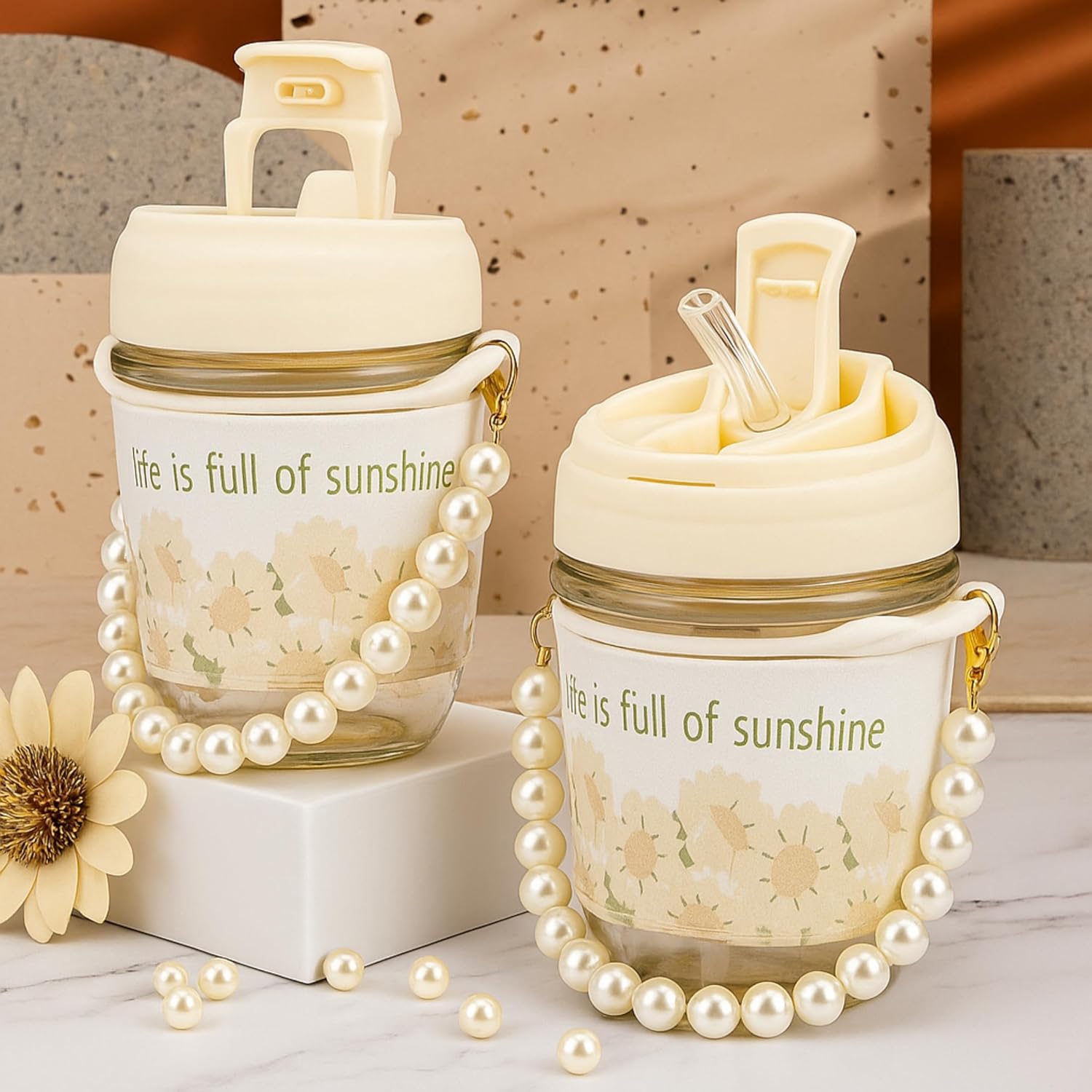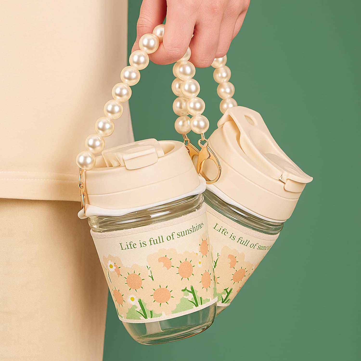 - The details show ingenuity. Rounded cup mouth Wide mouth design is more convenient Pouring water cleaning Pearl tote chain Easy to carry built-in steel wire does not break Silicone straw Detachable straw safe silicone material.