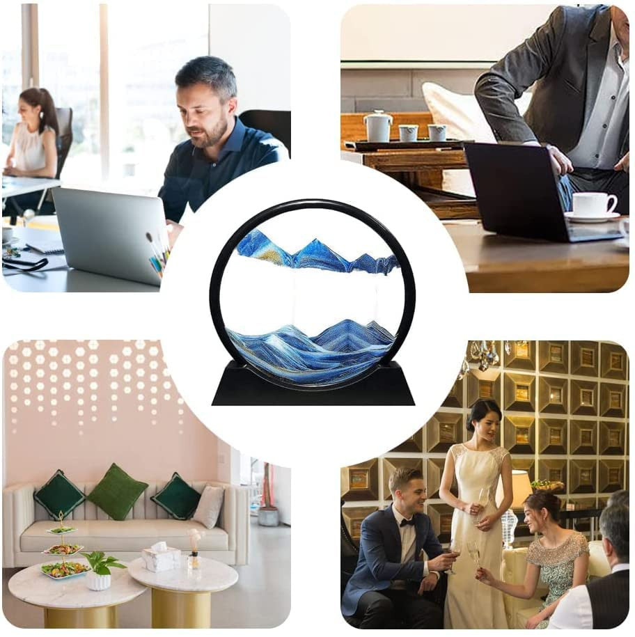 - Versatile Office Desktop Decoration: Perfect for any desk or office space, this 3D liquid sand painting serves as a stylish decoration while also acting as a stress-relieving element during work. The mesmerizing sand flow offers a break from the monotony of the workday.