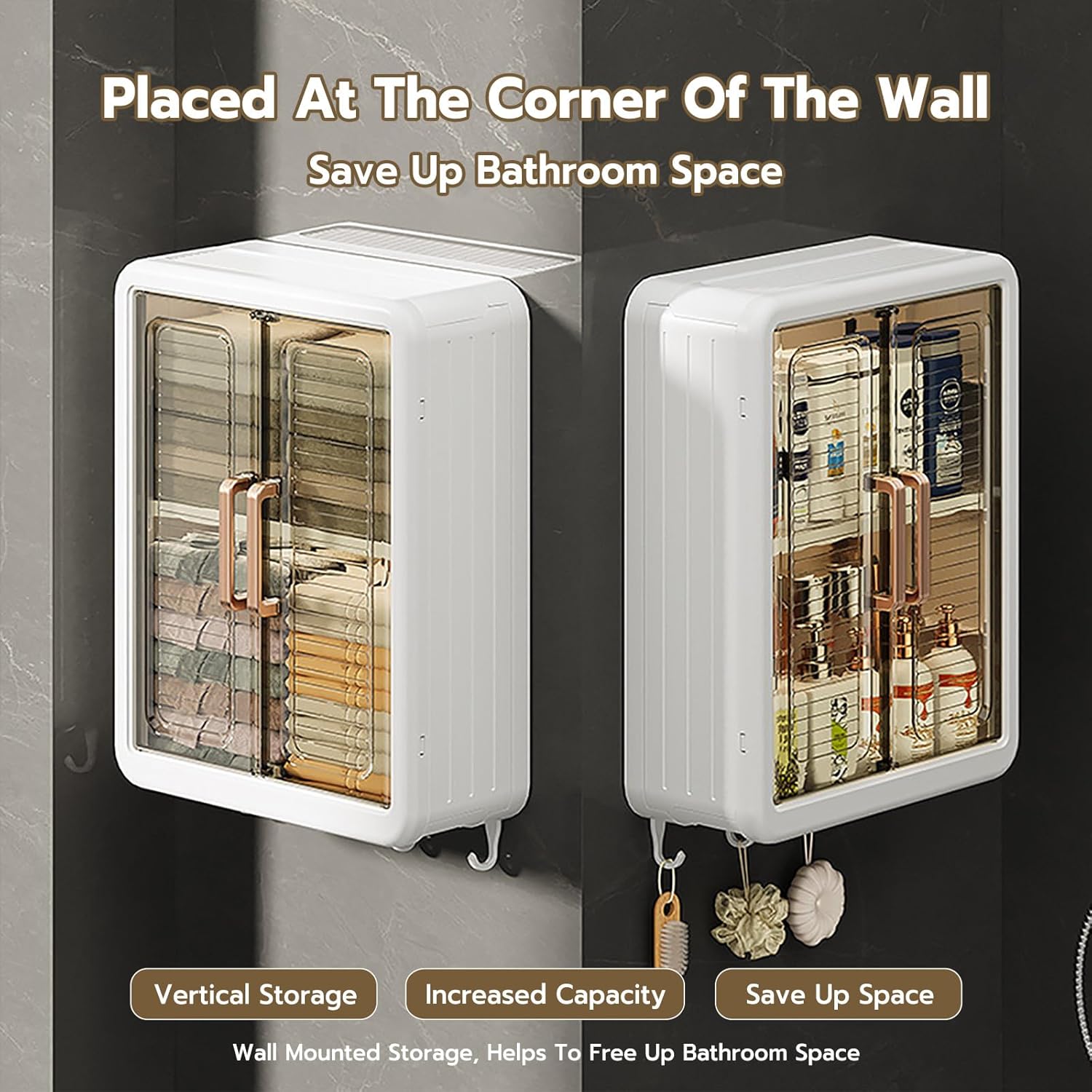 No-Drill Bathroom Shelf & Storage Cabinet - Wall Organizer for Bathroom Essentials, Makeup, Skincare, and More