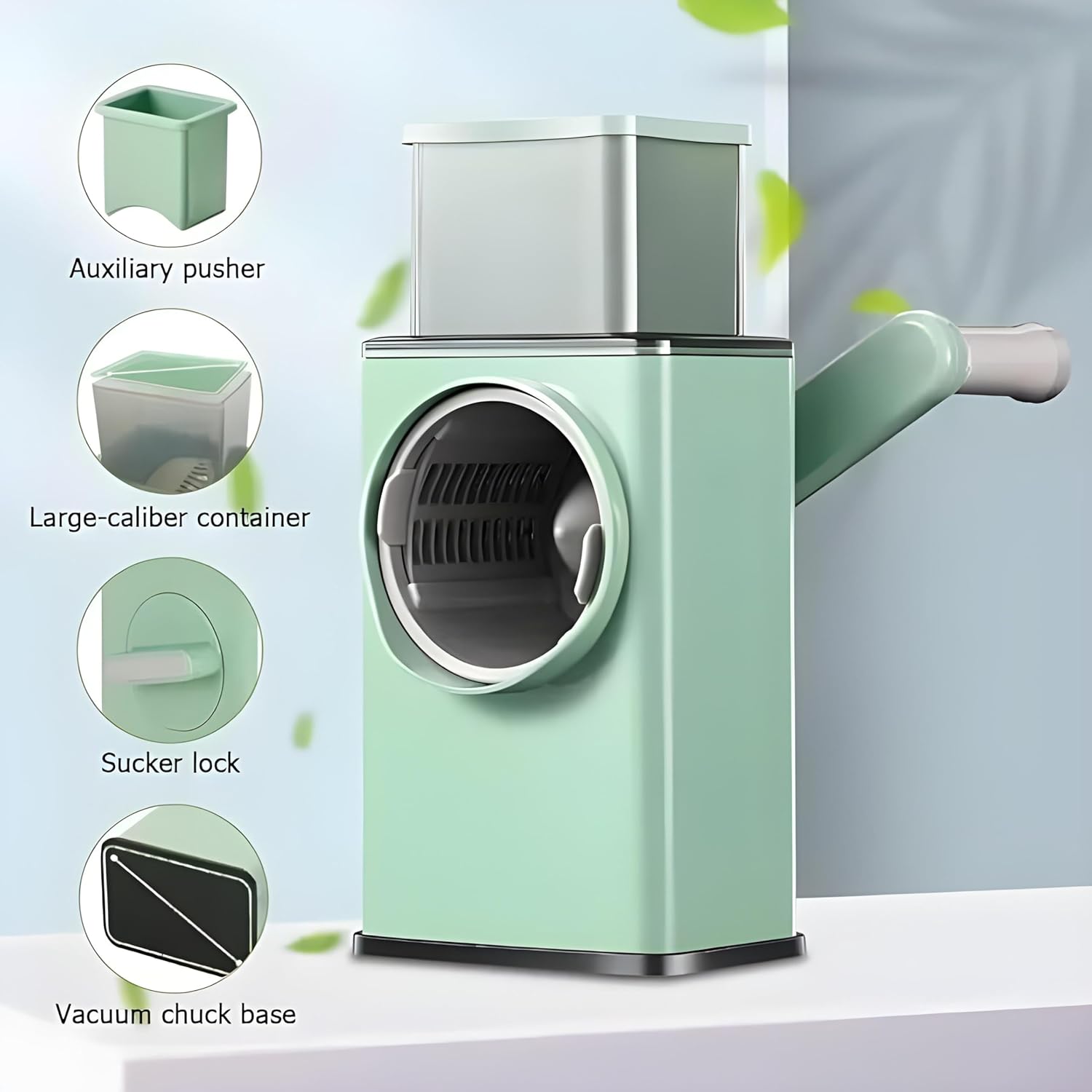 - 【Quick Spin & Quick Clean】: Our rotary grater the handle is designed as a spiral structure is more efficient, cutting potatoes, radishes, onions, carrots, garlic, cheese and so on quickly like a storm!15x faster than other cheese shredders. It's also easy to install and remove, just rinse it under running water after use, and the included small brush can help you clean any gaps.