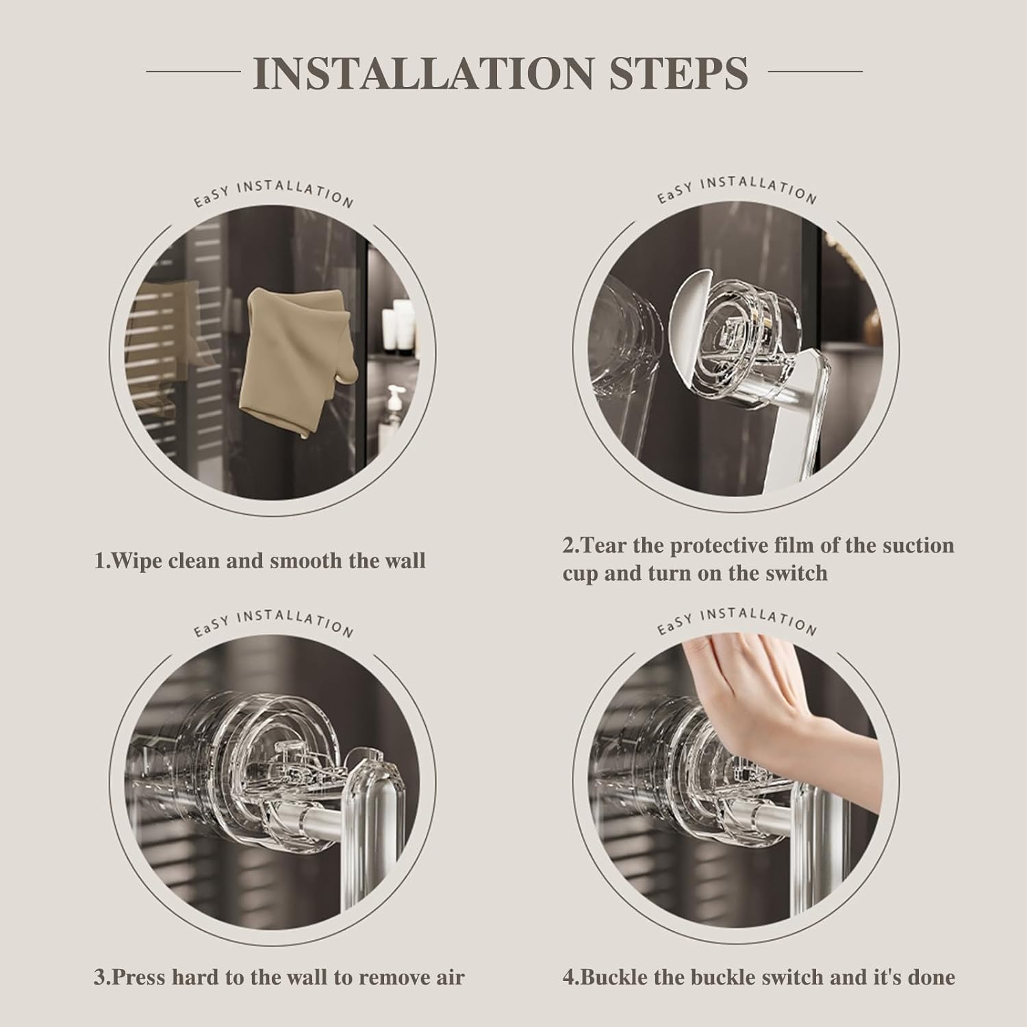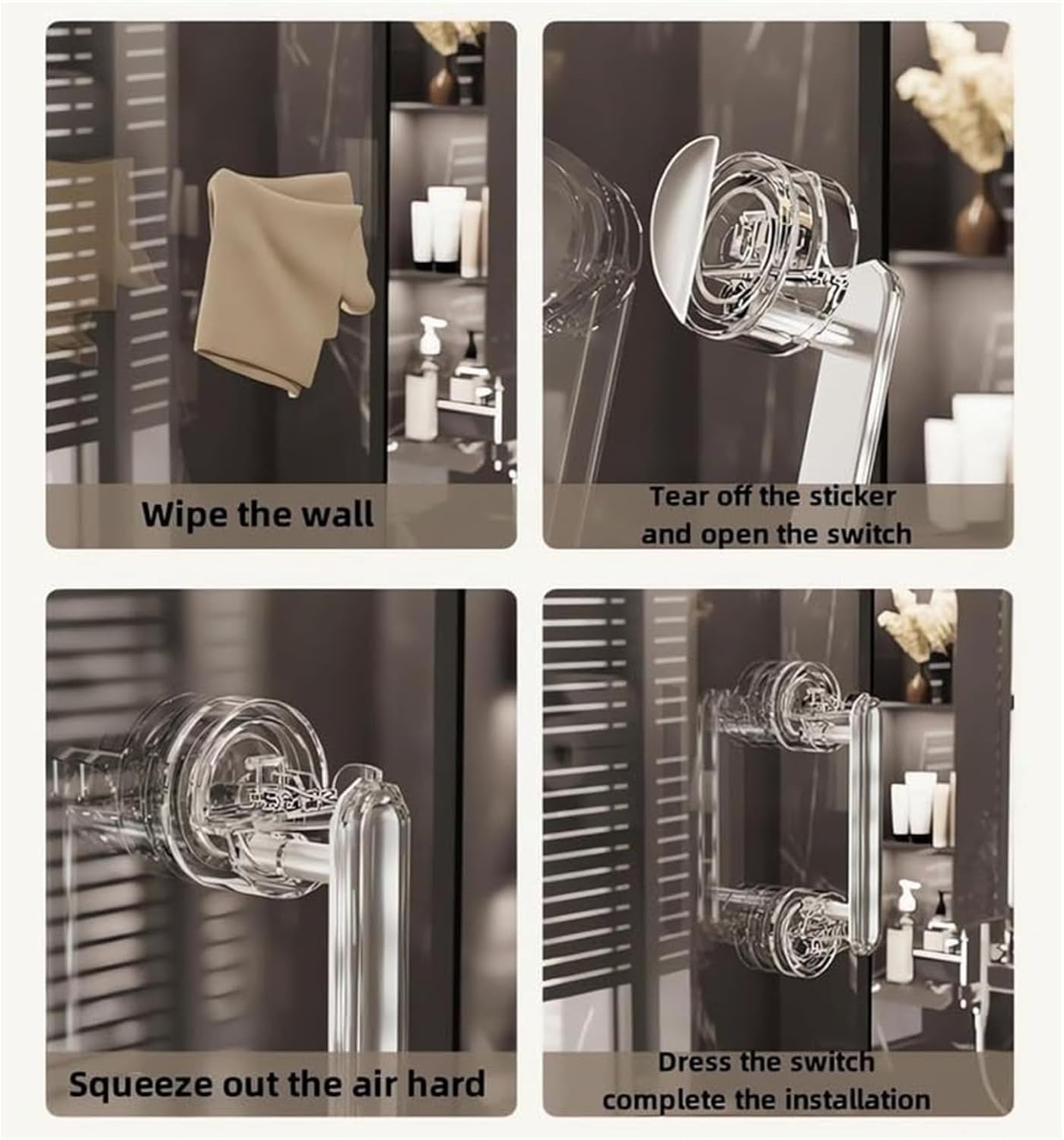 - No Drilling Installation: Easy to install with powerful suction cups — no nails, screws, or tools required. Simply press and lock for a strong hold.