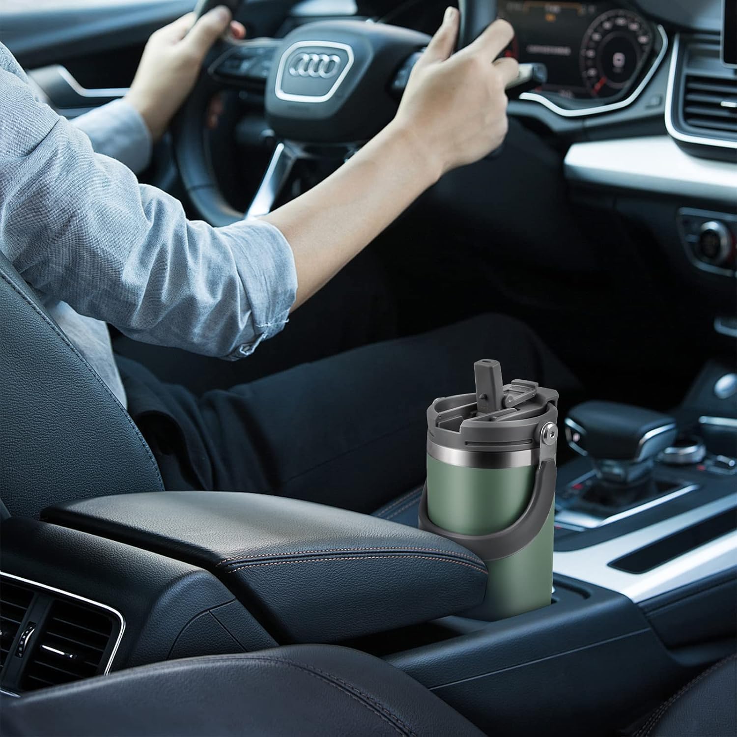- The ergonomic, rotating handle lets you quickly grab this cute tumbler with straw and go; Fits comfortably in most cupholders in your car or on most exercise machines; Easy to clean and dishwasher safe; It's the indispensable companion to bring with you anywhere