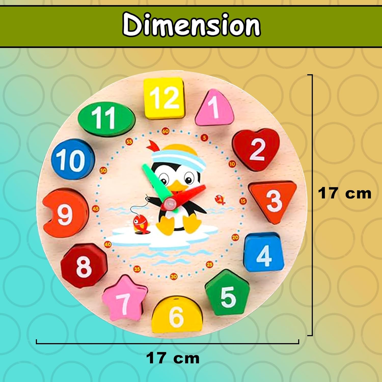 - Geometry Learning Clock: comes with 12 removable blocks, and 12 shaped number pieces, natural wood material, smooth edge and child-safe paints.